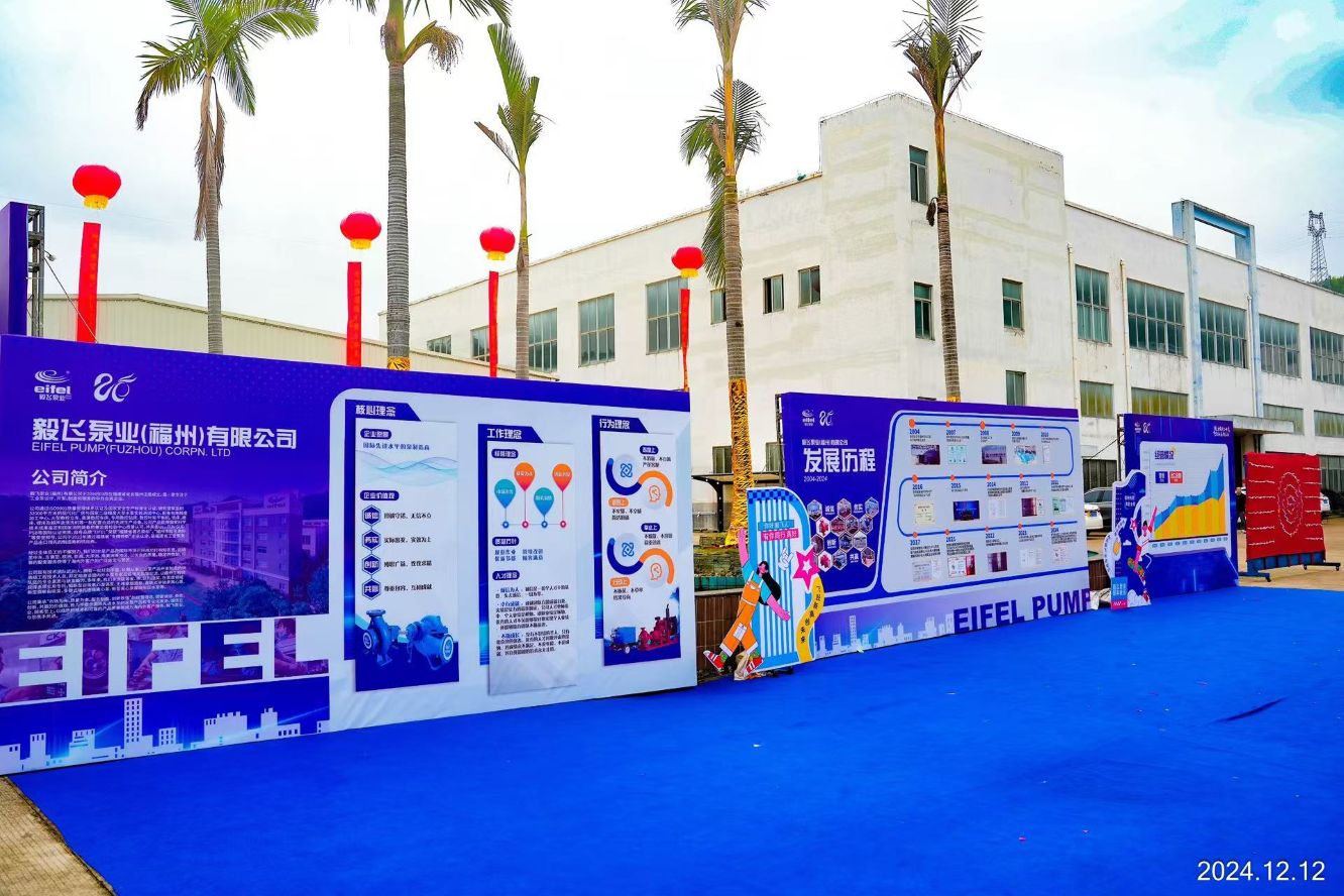 En 2024, EIFEL PUMP (FUZHOU) CORPN., LTD. celebra su memorable 20.º aniversario. Como empresa especializada en la investigación, el desarrollo, la producción y la venta de bombas, desde su fundación en 2004, EIFEL PUMP ha superado retos y se ha ganado la confianza de clientes globales gracias a la excepcional calidad de sus productos y un servicio excepcional.